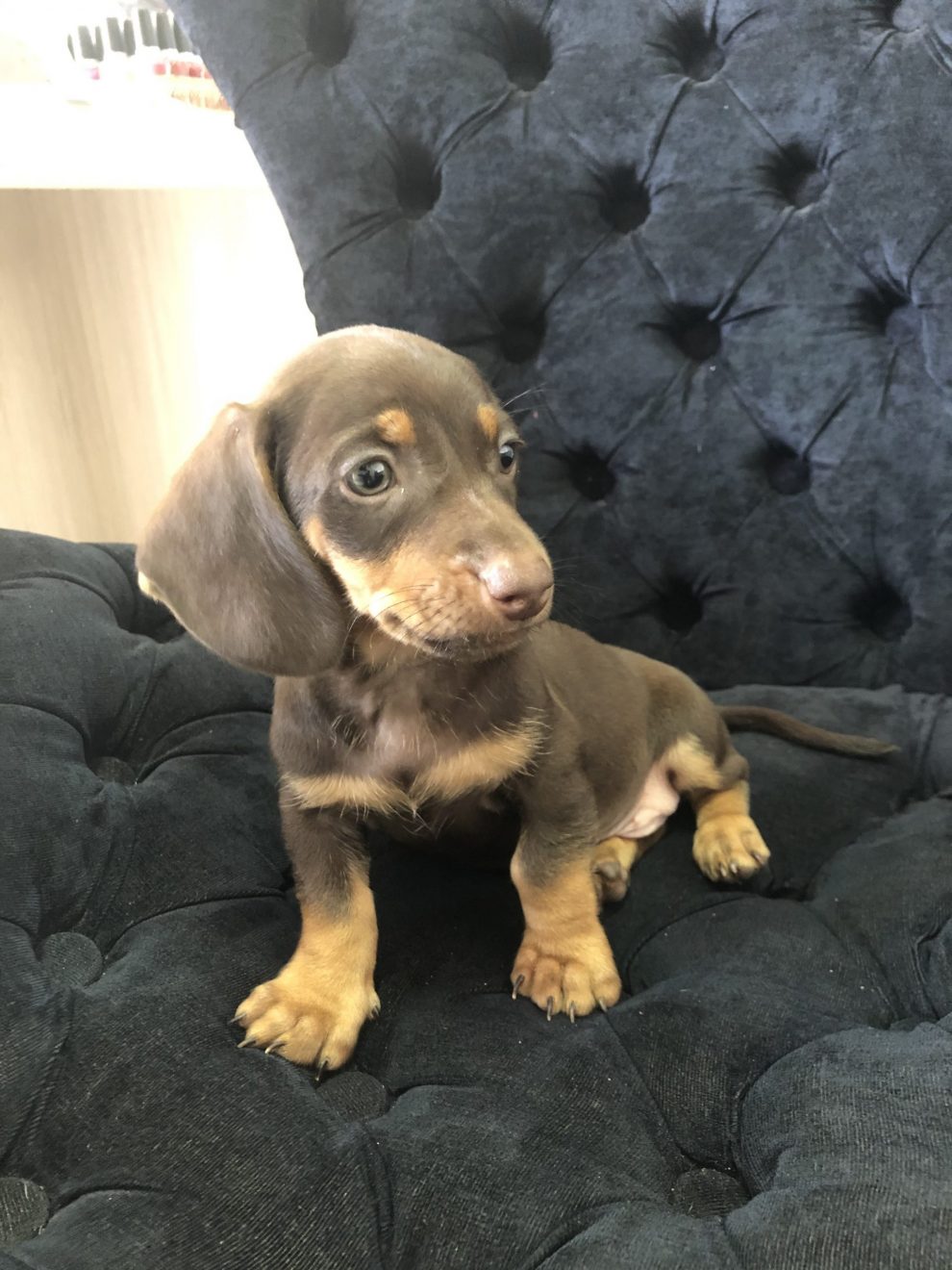 Filhote Dachshund macho na cor chocolate, esse príncipe tem ótima energia e adora receber carinho. É um filhote dócil, carinhoso, ótimo companheiro para crianças e para adultos, um amiguinho para a vida inteira. Você vai se derreter com tanta fofura.